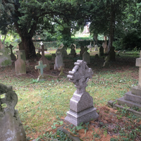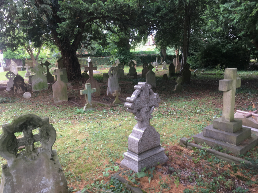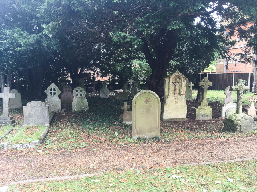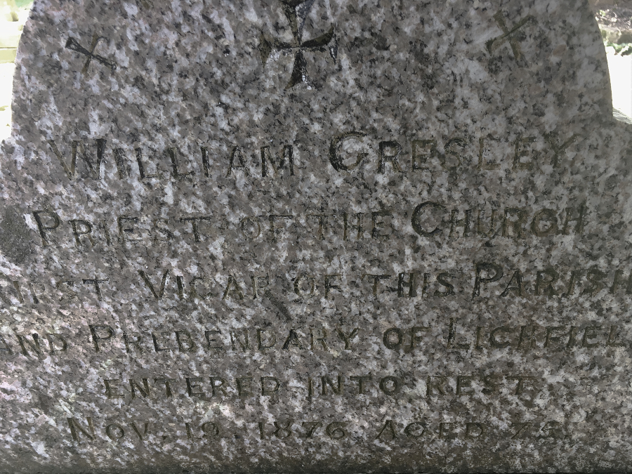 The images of the grave stones are not very clear due th their age - they include the gravestones of the first Vicar of All Saints - William Gresley; the second Vicar, Canon Drummond and also that of William Nicholson, founder of Nicholsons Brewery (now the site of the Nicholsons Shopping Centre) and donor of the site for the Library in St. Ives Road.