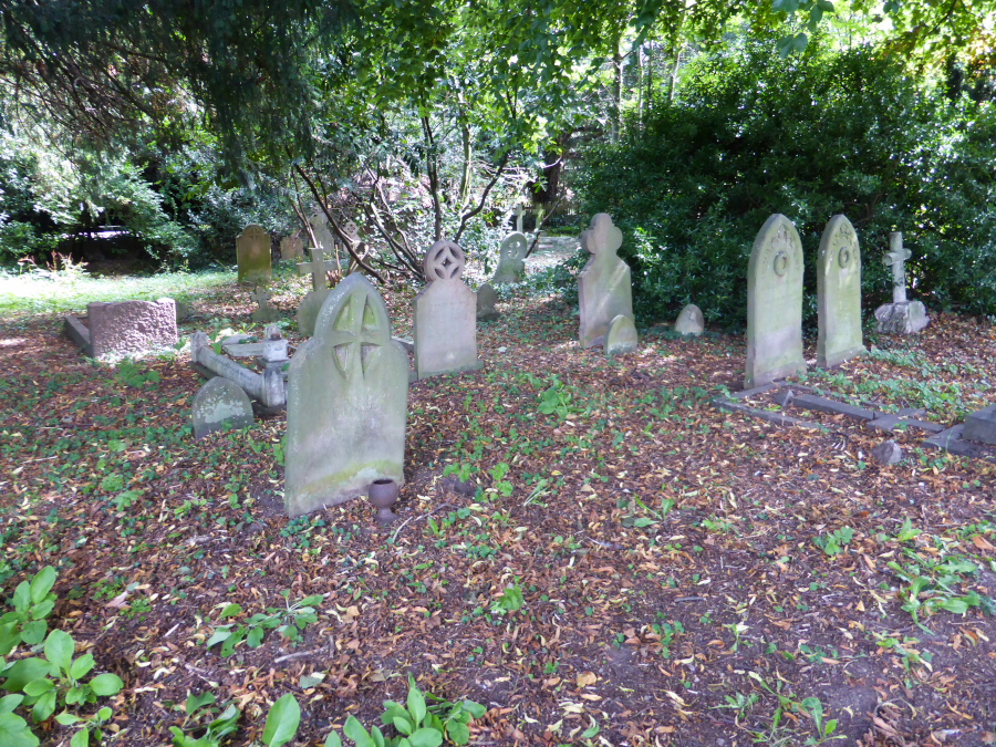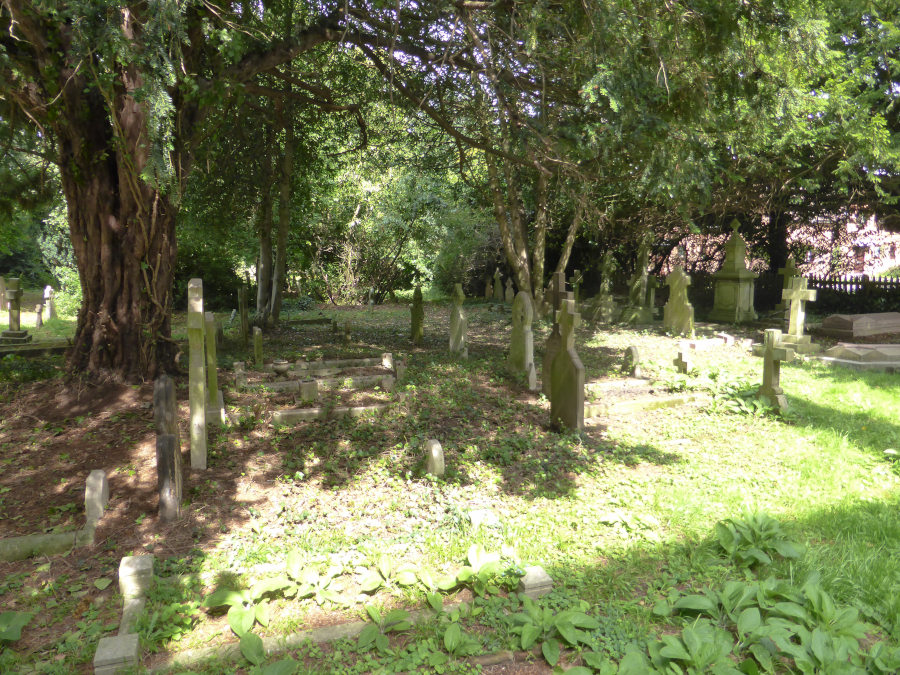 The images of the grave stones are not very clear due th their age - they include the gravestones of the first Vicar of All Saints - William Gresley; the second Vicar, Canon Drummond and also that of William Nicholson, founder of Nicholsons Brewery (now the site of the Nicholsons Shopping Centre) and donor of the site for the Library in St. Ives Road.