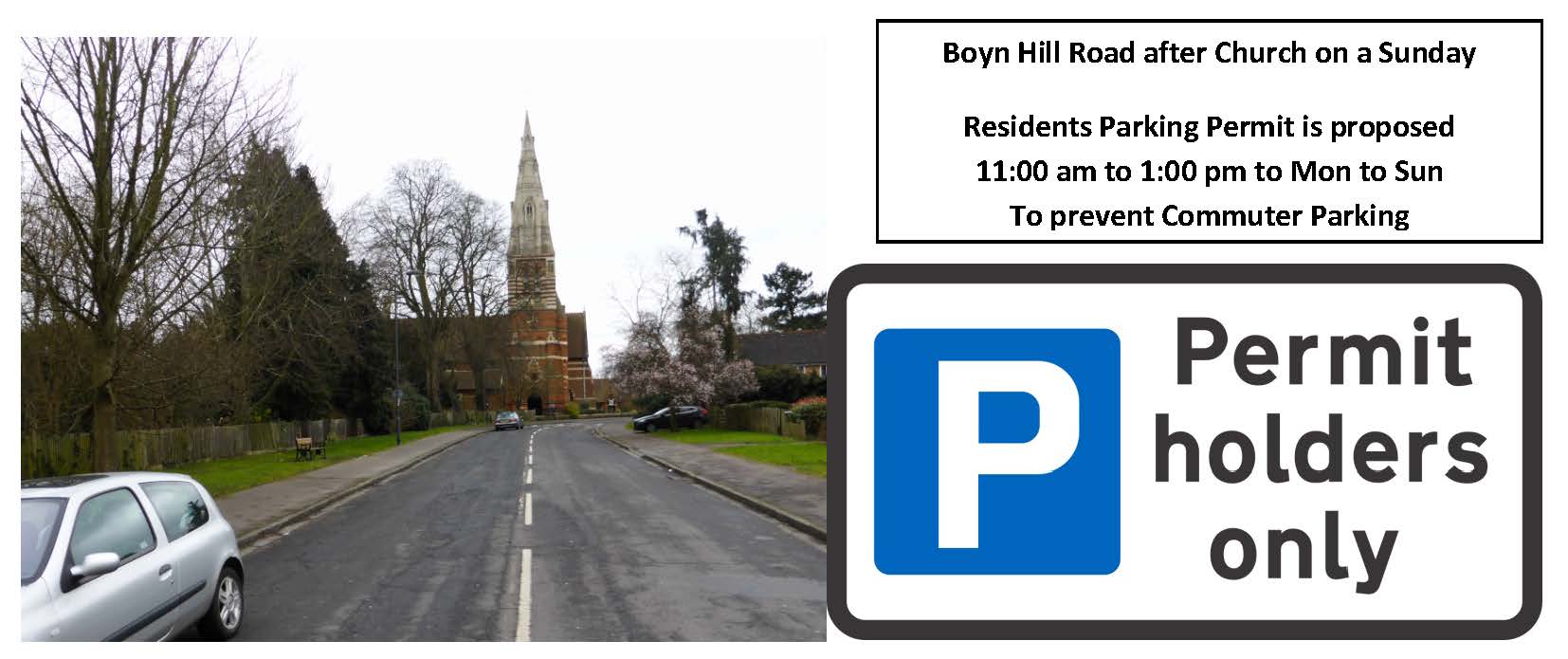 It is proposed to make Boyn Hill Road residents only parking from 11:00am to 1:00 pm SEVEN days per week.