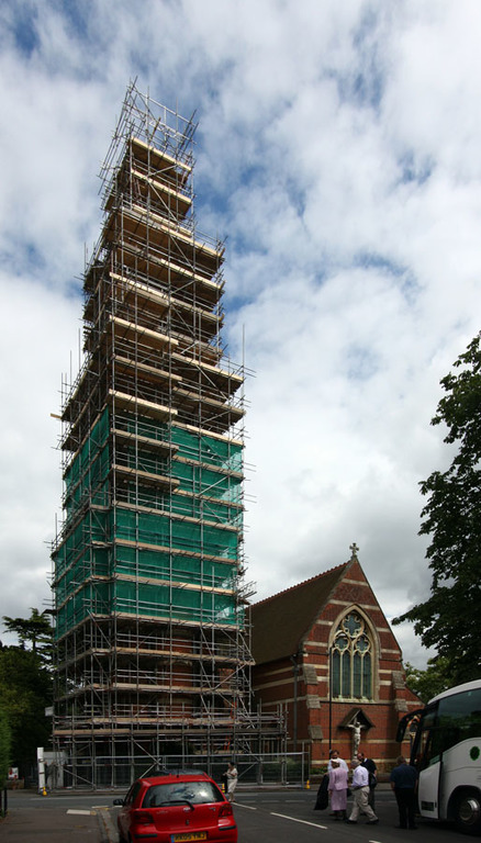 The images published on this page were taken by John Salmon during a visit in July 2008 with the Anglo Catholic History Society. It was at a time when the spire was being repaired (for more information about this repair click here on the John Salmon page).