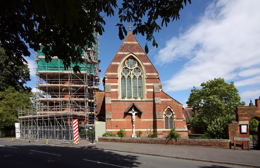 The images published on this page were taken by John Salmon during a visit in July 2008 with the Anglo Catholic History Society.  It was at a time when the spire was being repaired (for more information about this repair click here on the John Salmon page).